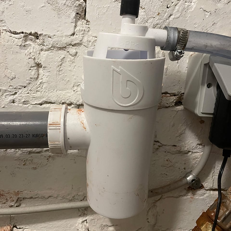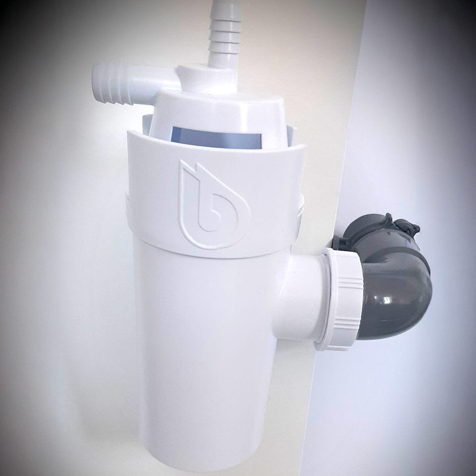 Voert afvalwater af naar de riolering en voorkomt dat onaangename geurtjes terug in de riolering stromen.